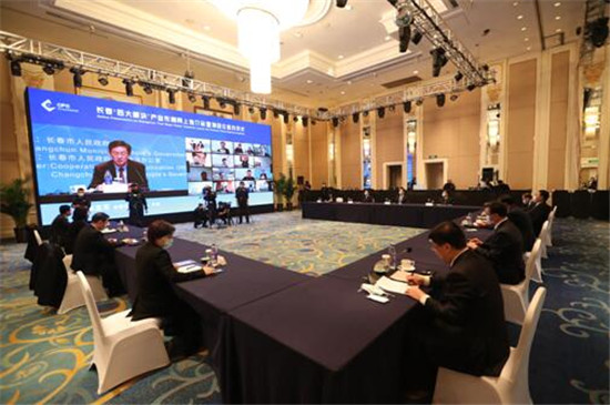 28日下午,长春“四大板块”产业布局网上推介会暨项目云签约仪式在吉林省长春市举行。来自日本、韩国以及香港的百余家企业高管通过视频会议软件搭建的远程对接平台,与长春市展开投资洽谈,寻求合作良机。