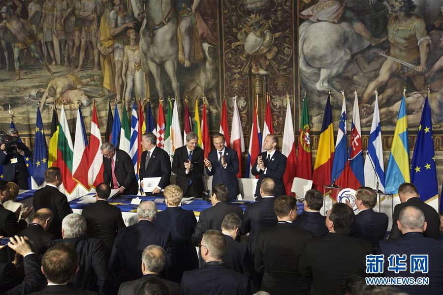 3月25日,与会领导人在意大利罗马参加欧盟特别峰会。纪念《罗马条约》签署60周年欧盟特别峰会25日在意大利首都罗马举行。会议期间,除英国以外欧盟27个成员国的领导人和欧盟机构领导人将共同讨论欧洲和欧盟的未来。