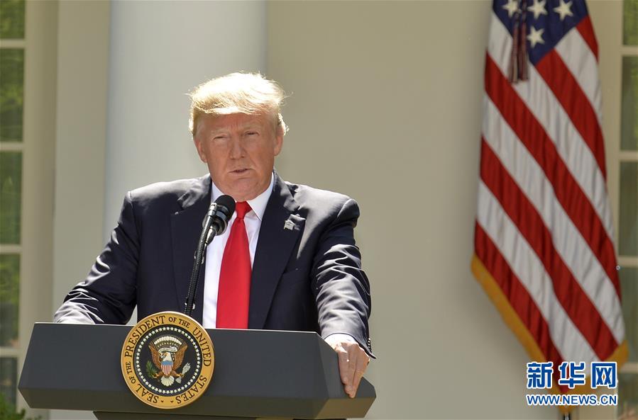 6月1日,美国总统特朗普在华盛顿白宫发表讲话。美国总统特朗普1日在白宫宣布,美国将退出应对全球气候变化的《巴黎协定》。新华社发(迈克·泰勒摄)