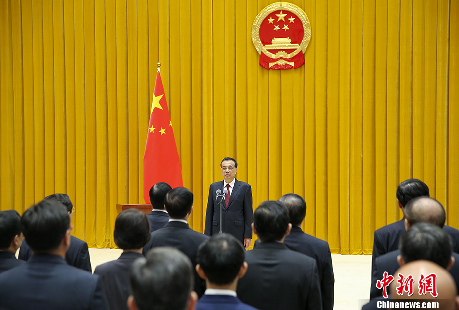 新华社北京7月3日电 7月3日,国务院在中南海举行宪法宣誓仪式。国务院总理李克强监誓。