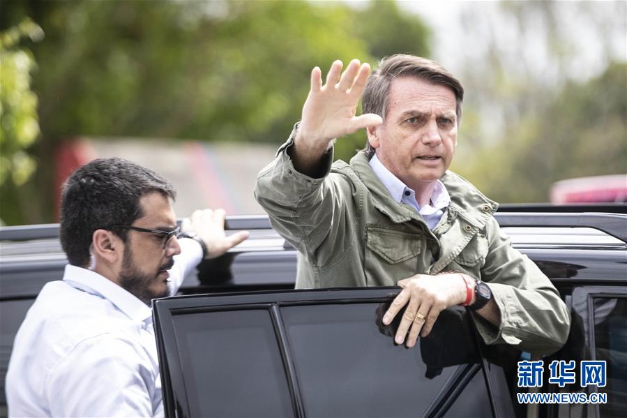 10月28日,在巴西里约热内卢,博尔索纳罗投票后向支持者致意。巴西高等选举法院28日晚宣布,在巴西大选第二轮投票中,社会自由党候选人博尔索纳罗获胜并当选新一任巴
