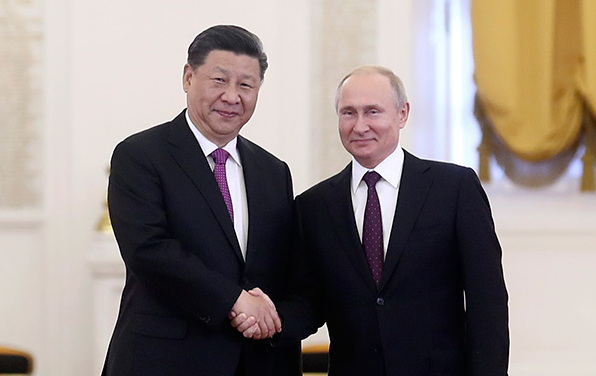 当地时间6月5日,中国国家主席习近平在莫斯科克里姆林宫同俄罗斯总统普京会谈。会谈前,普京总统在克里姆林宫乔治大厅为习近平主席举行隆重欢迎仪式。中新社记者盛