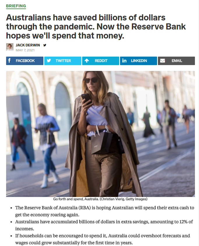 澳洲央行指出,澳人在疫情期间存款达数十亿元,其盼望澳人能通过消费这些额外的资金,促进澳洲经济再次繁荣。澳洲央行(RBA)7日发布的月度货币政策声明指出,澳人在疫