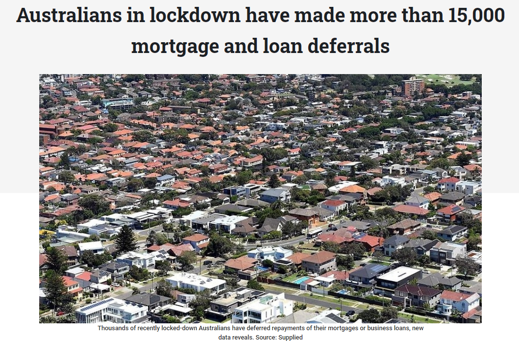 澳洲银行协会(ABA)近日发布的新数据显示,受新冠肺炎疫情封城的影响,自今年7月8日以来,有超过1.5万名澳人推迟还贷。其中,有1.45万名澳人推迟偿还房贷。超过2/3来自