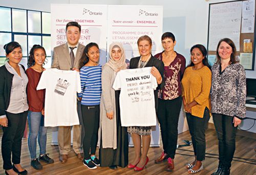 罗鬓妮(右四)与移民中心人员合照。左三为安省省议员董晗鹏。加拿大《星岛日报》中国侨网10月6日电据加拿大《星岛日报》报道,加拿大安省政府4日宣布将于未来两年投