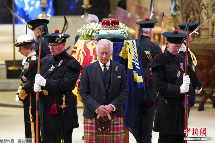 中新网9月13日电据英国天空新闻网报道,英国国王查尔斯三世等王室高级成员当地时间12日晚在苏格兰爱丁堡圣吉尔斯大教堂,为已故女王伊丽莎白二世进行守夜。报道称,