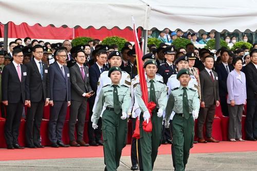 中新社香港5月4日电(记者曾平)今年是五四运动104周年,由香港各界青少年活动委员会举办的五四升旗礼4日在金紫荆广场举行。这是疫情3年后主办方首次复办此项活动,各
