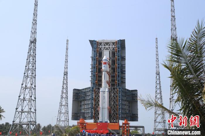 中新网北京5月7日电(黄国畅李康)据中国载人航天工程办公室消息,北京时间5月7日,天舟六号货运飞船与长征七号遥七运载火箭组合体垂直转运至发射区。目前,文昌航天发