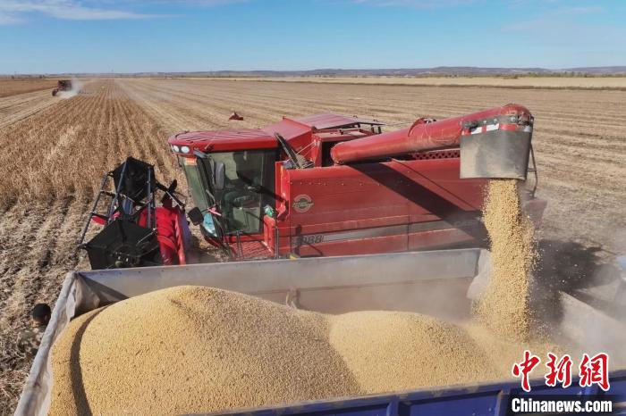 中新网黑河10月9日电(胡心玥关锁胜记者王琳)9日清晨,黑龙江省黑河市的广袤田野上机器轰鸣、大豆摇铃。2024年,黑河大豆种植达2000万亩(15亩为1公顷,下同)以上,正在