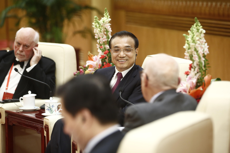 中新社盛佳鹏摄 农历丁酉年新春佳节前夕,国务院总理李克强1月20日下午在人民大会堂亲切会见在华工作的部分外国专家代表并同他们座谈。李克强表示,今天是中国