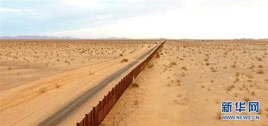 这是2月10日在墨西哥索诺拉沙漠拍摄的美墨边境墙。新华社记者淡航摄墨西哥经济部长伊尔德方索·瓜哈尔多3日表示,希望与美国在今年6月中旬重新开始谈判北美自由贸易
