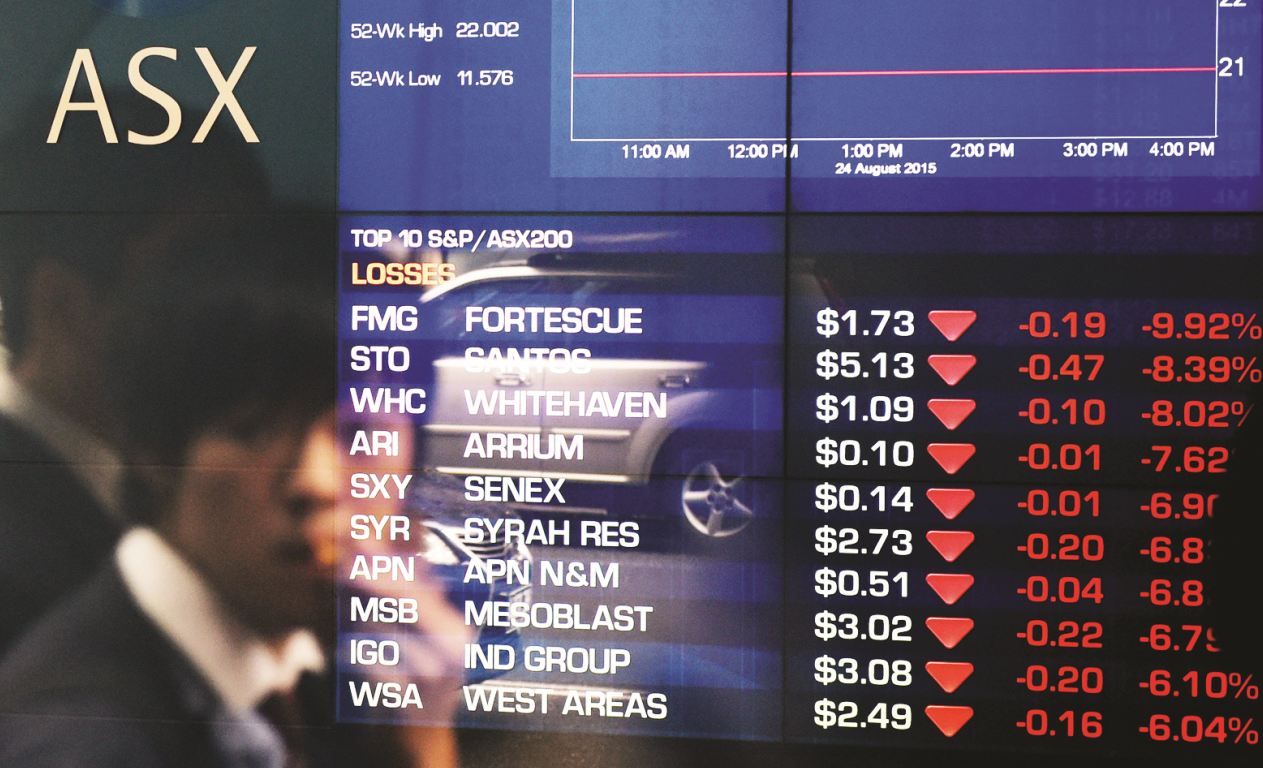 据报道,周三开盘,澳洲股指便跌1.1%,之后跌势难止。到澳洲东部夏令时间中午12点,本地股市一下蒸发了逾250亿澳元,S&P/ASX200指数下跌1.33%(即76.8点),报5697.8