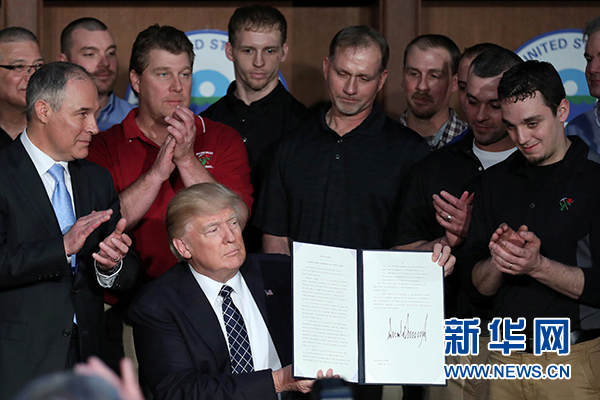 美国总统特朗普28日签署一份名为“能源独立”的行政命令,旨在推翻奥巴马政府时期的气候政策。在20多名煤矿工人和一些政府官员的见证下,特朗普当天在美国环境保护