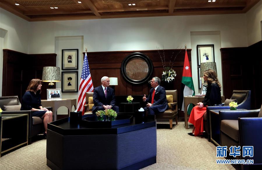 1月21日,在约旦首都安曼,约旦国王阿卜杜拉二世(右二)与美国副总统彭斯(左二)会谈。约旦国王阿卜杜拉二世21日表示,期待美方能够在耶路撒冷地位问题上找到正确方向