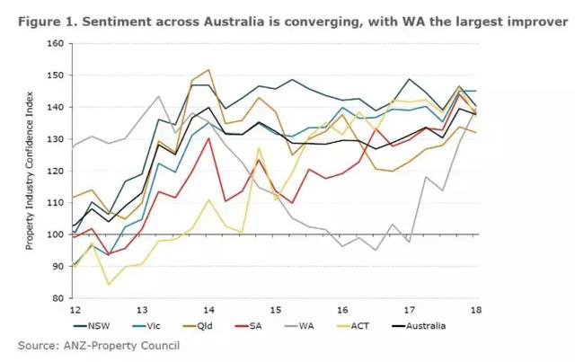 澳新银行澳大利亚首席经济学家大卫普朗克(David Plank)表示:“澳新银行(ANZ-Property Council)3月份的季度调查显示,房地产行业的情绪依然高涨。其中,西澳大利亚以采矿业为主和非采矿业为主的地区对与房价的信心已经上升到了与澳洲东海岸各州近似的水平。这证明这些跌去正在逐渐走出矿业衰弱期。”