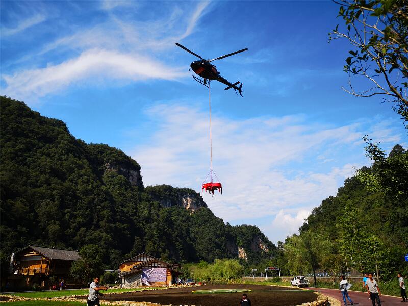 一位90后的美女飞行员,将驾驶直升机,将德国博兰斯勒公司专门定制的中国红钢琴由黄龙洞景区黄龙音乐厅吊挂至天子山御笔台之巅。