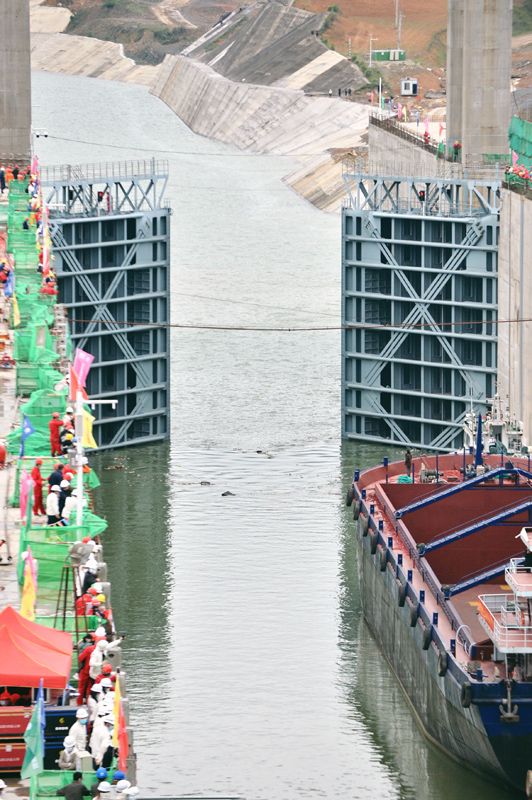 当日,广西大藤峡水利枢纽工程船闸试通航启动,预计一年后可正式通航