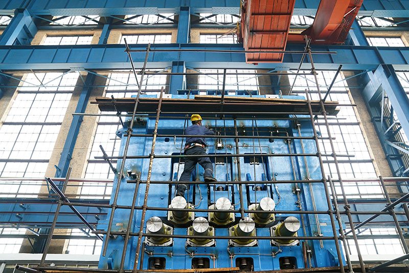 在中国一重的生产车间,工人在生产作业(4月10日摄)。
