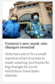 在过去24小时里,维州处理了2.215万份新冠肺炎检测结果,超过1.5445万澳人接受了疫苗注射。维州卫生厅在周一(5日)召开了会议,这些数字的出现促使他们开始考虑在办公室废除口罩佩戴规定,更改AFL比赛观众人数限制以及其他娱乐活动的规定,新的限制措施可能会在周四(8日)晚间11点59分开始实施。
