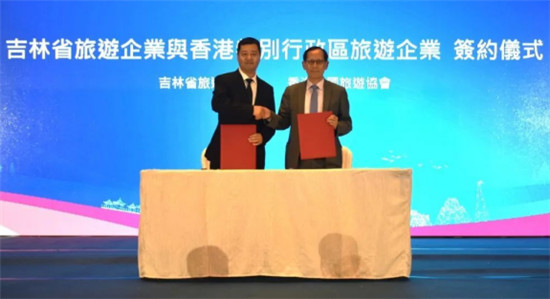 吉港两地旅游业界往来频繁、合作密切。现场,吉林省旅游协会与香港中国旅游协会、吉林省环球国际旅行社与美丽华旅游签署战略合作协议,推动两地文旅资源共享、市场互动、客源互送,促进文旅市场的共同繁荣与发展。