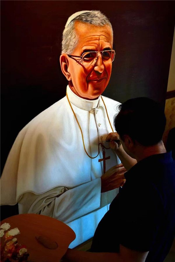 2018年,张焰的作品在梵蒂冈与故宫的双向艺术展中大放异彩,成为文化交流的重要使者。同年,他还接到为教宗若望保禄一世绘制封圣肖像画的邀请。他潜心创作,那幅面带祥和笑容的肖像,在圣彼得广场面对25万信众揭幕时,瞬间成为焦点。画中的教宗,仿佛穿越时空,传递着慈爱与和平,这幅作品也因此成为艺术外交的经典之作。