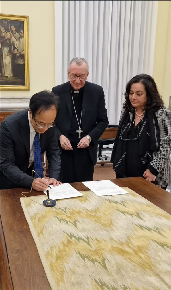 通过文化交流、学术合作等方式,增进中梵两国人民之间的相互了解和友谊。这不仅有助于改善双边关系,还能为两国关系的长期发展营造良好的社会氛围。在民间交流方面,2017年梵蒂冈博物馆就收藏了中国艺术家两幅油画作品,这也是近百年来梵蒂冈收藏的第一位在世画家作品。2022年梵蒂冈请这位画家,为去世的教宗绘制油画肖像作品,为了封圣而作。