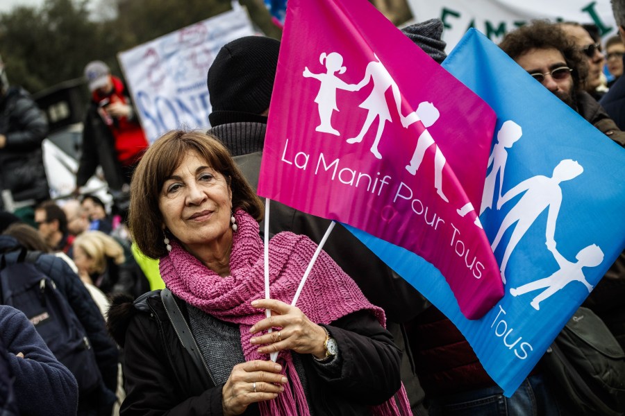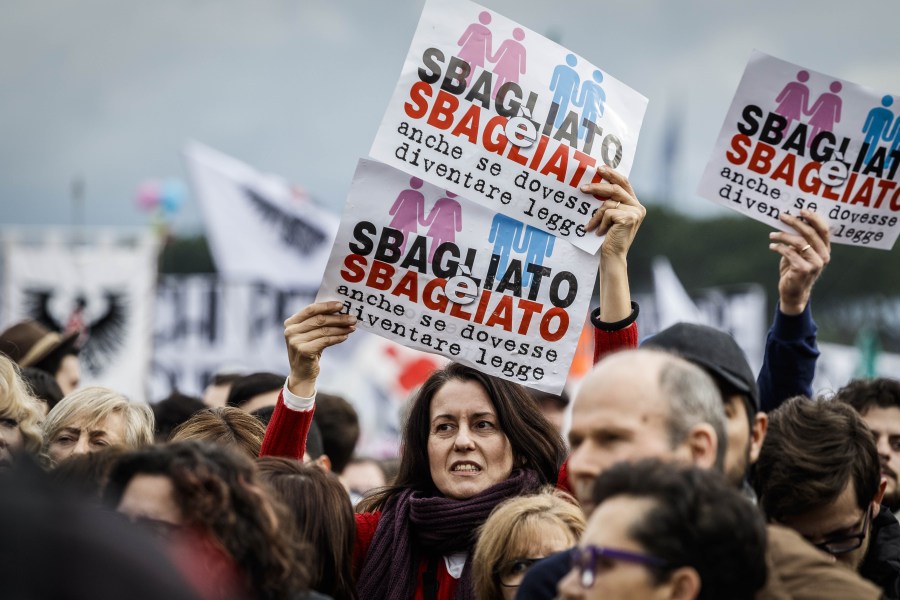 当地时间2016年1月31日,意大利罗马,成千上万群众举行“家庭日”集会,反对同性婚姻和同性恋收养孩子。