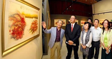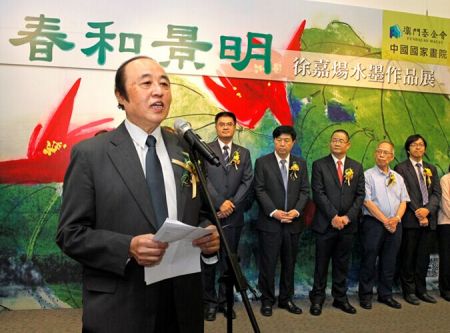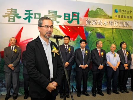 4月28日,由澳门基金会、中国国家画院共同主办的“春和景明——徐嘉炀水墨作品展”在澳门教科文中心隆重开幕 中新社发 王保胜 摄