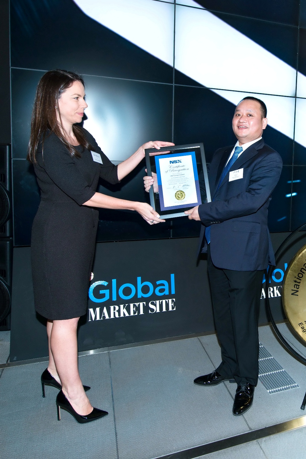 NSX的首席执行官Ann对中科光电在NSX的上市表示欢迎和祝贺。她介绍,中科光电是今年8月以来第二家来自中国在NSX上市的公司,这也再次证明NSX为亚洲的成长创新的企业提供了良好的平台,也充满了吸引力。她说,NSX作为澳洲第二大股票交易所,近些年接到越来越多来自亚洲包括中国、马来西亚和新加坡的公司的上市申请,数量逐年上升。