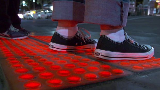 据报道,许多行人在走路时常常低头看手机,因而忘了留意交通信号灯。为了应对低头族,墨尔本政府试行了一项新措施——在人行道路面安装闪灯。