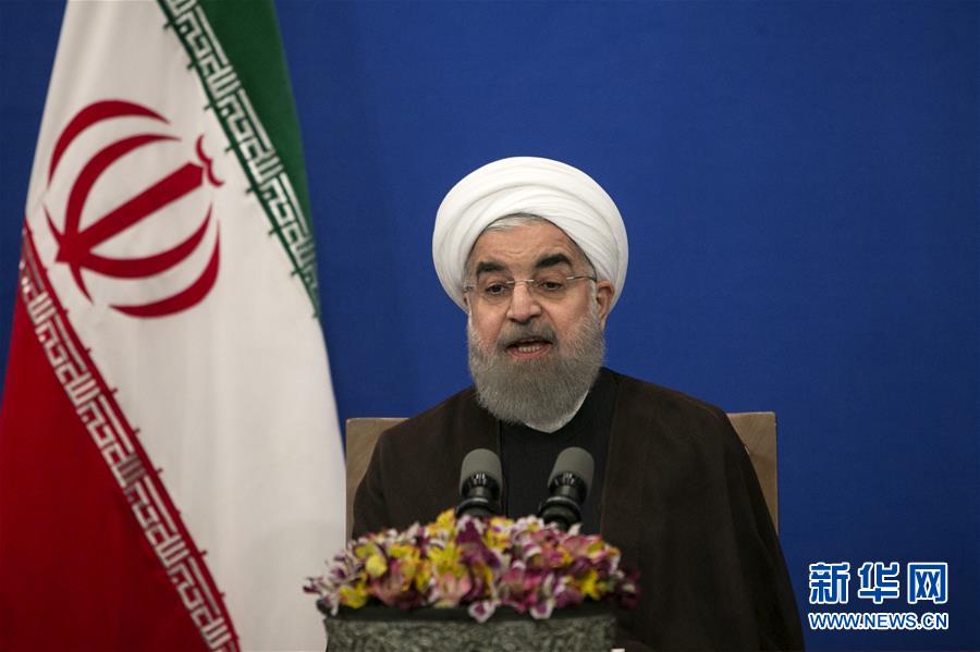 5月20日,在伊朗首都德黑兰,鲁哈尼发表胜选讲话。伊朗内政部20日宣布,现任总统鲁哈尼在伊朗第12届总统选举中获胜。新华社发(艾哈迈德·哈拉比萨斯摄)
