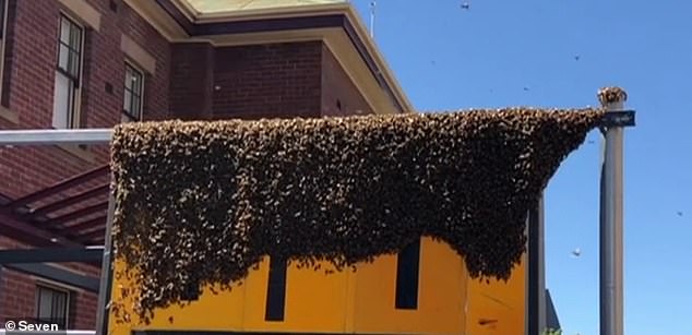 塔州霍巴特CBD一块路牌被一群蜜蜂“占领”。周三,塔州霍巴特CBD一块路牌被一群蜜蜂“占领”,很多路人都不敢靠近,怕被蜇伤。据悉,周三,霍巴特CBD的一处道路指示牌