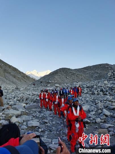 中新网拉萨5月28日电(袁泉张伟何蓬磊)5月28日,于此前一日登顶珠穆朗玛峰(简称“珠峰”),并完成顶峰测量任务的2020珠峰高程测量登山队8名攻顶队员安全返回海拔520
