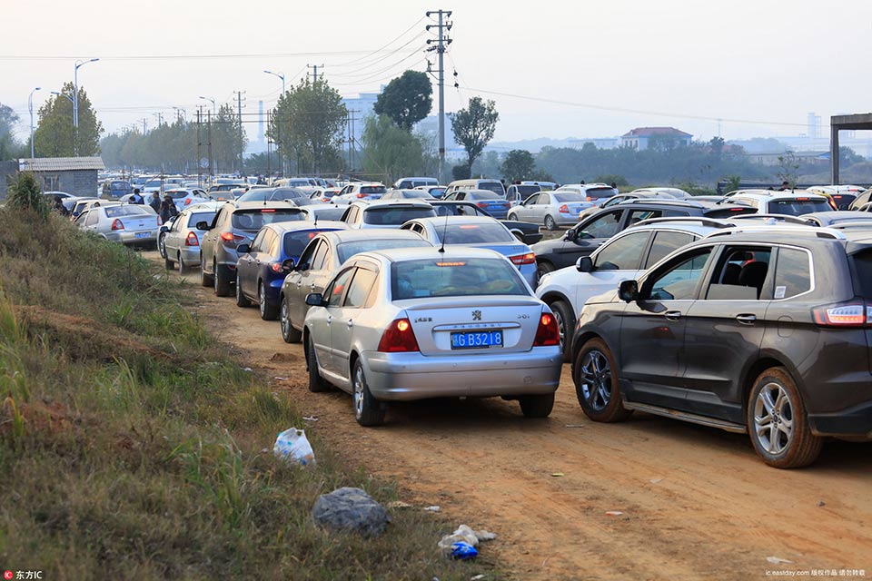 2016年11月6日,江西省九江市,中国最大淡水湖鄱阳湖提前进入枯水位,湖底裸露出来,变成了上万亩的鄱阳湖“蓼子花海”和“大草原”,吸引上万市民驾车蜂拥来到这里游