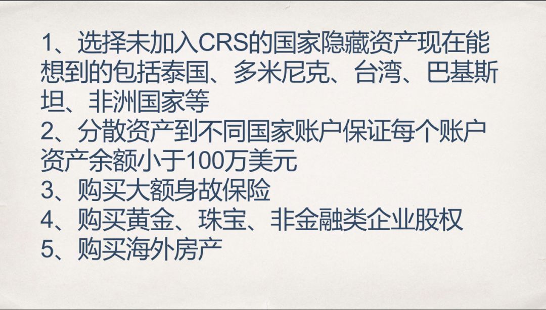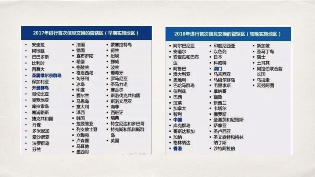 大部分发达国家和新兴市场国家都已经加入CRS体系里了,没有加入到的包括美国、泰国、菲律宾、越南啊,实际上都是现在很好的投资机会。这些国家都是没有加入到CRS里。