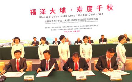 北京讯6月28日上午,世界长寿乡(中国•大埔)颁证授牌仪式暨新闻发布会在北京举行,正式宣告大埔成为国际自然医学会认定的全球第八个“世界长寿乡”。全国人大常委会原副委员长邹家华、全国政协原副主席叶选平、中国老区建设促进会会长王健、光明日报原总编辑何东平等为这一盛会发来贺电。