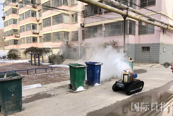 据介绍,该防疫消毒机器人可喷洒所有液体药剂,雾化细腻,瞬间覆盖,遥控操作可达1000米,完全杜绝在消毒作业中对人体的侵害,适用于各大农贸市场、商场、公园广场、车站、停车场、居民社区、街道等户外和大型室内场所。此前,防疫消毒机器人样机已在德州的小区投入使用,极大提高了消杀防疫效率、降低人员接触的交叉感染风险,取得了良好防疫效果。
