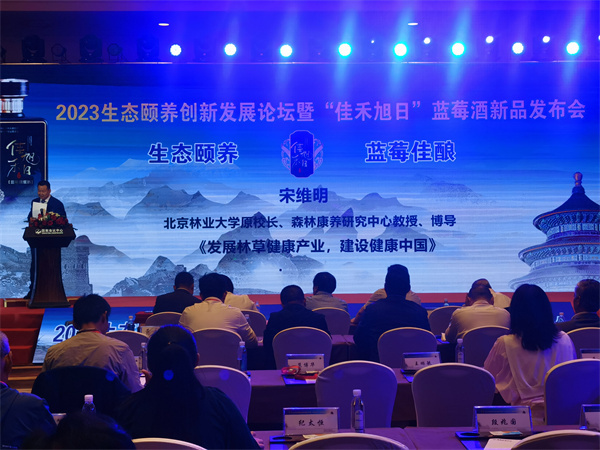 探索生态颐养行业创新,促进蓝莓产业发展,共享蓝莓酒市场机会,由中国林业与环境促进会主办,中国林业与环境促进会生态颐养分会、江苏新商学品牌管理有限公司承办的“2023 生态颐养创新发展论坛暨‘佳禾旭日’蓝莓酒新品发布会”于2023 年 5 月 19 日下午在北京国家会议中心开幕。