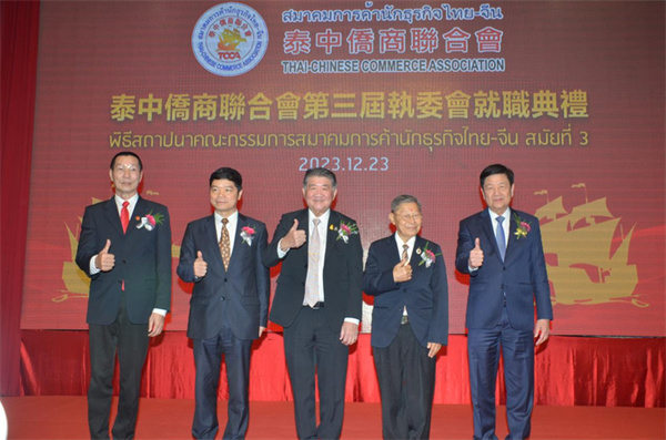 泰中侨商联合会第三届执委会就职盛典于2023年12月23日晚6时在泰国中华总商会光华堂隆重举行。邝锦荣博士蝉联第三届主席,泰国国务院第一副总理兼商业部长普坦·威乍耶猜阁下、泰王国阿伊瓦特查克潘亲王、中华人民共和国驻泰国大使馆刘敬师侨务参赞、泰国中华总商会林楚钦主席登台见证。泰国皇家、政府、侨界、商界领袖精英、社会名流、泰中侨商联合会和东部经济走廊(EEC)分会、清迈分会、青年委员会的成员莅临出席盛典,冠盖云集,圆满成功。