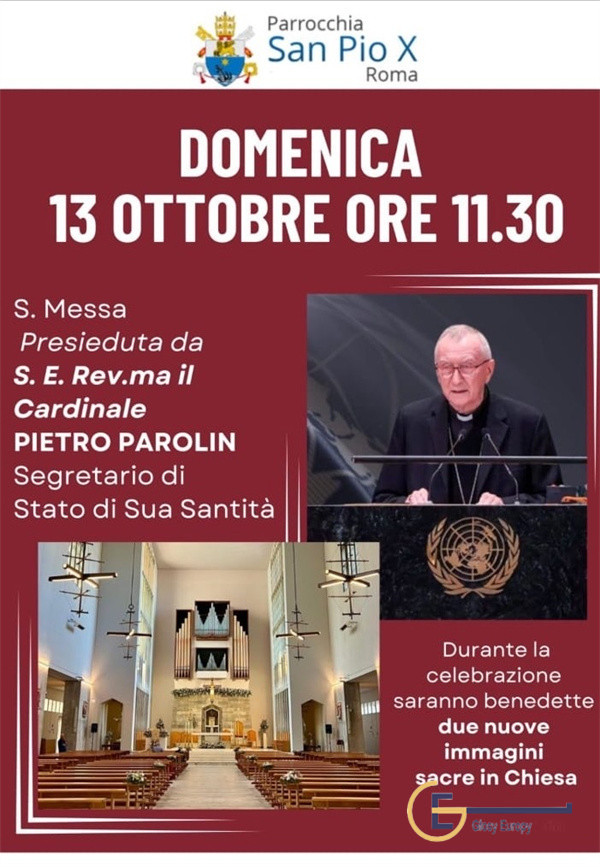 欧中之声讯(记者 杜国勇)2024年10月13日,圣座国务卿伯多禄·帕罗林枢机在位于罗马西区的圣皮奥教堂(Parrocchia di San Pio X),以特殊的方式庆祝了弥撒。此次弥撒,帕罗林枢机代表梵蒂冈,亲自为人们献上祝福,并捐赠了一副新圣像——《微笑教宗》,悬挂在教堂,以供信徒崇拜。