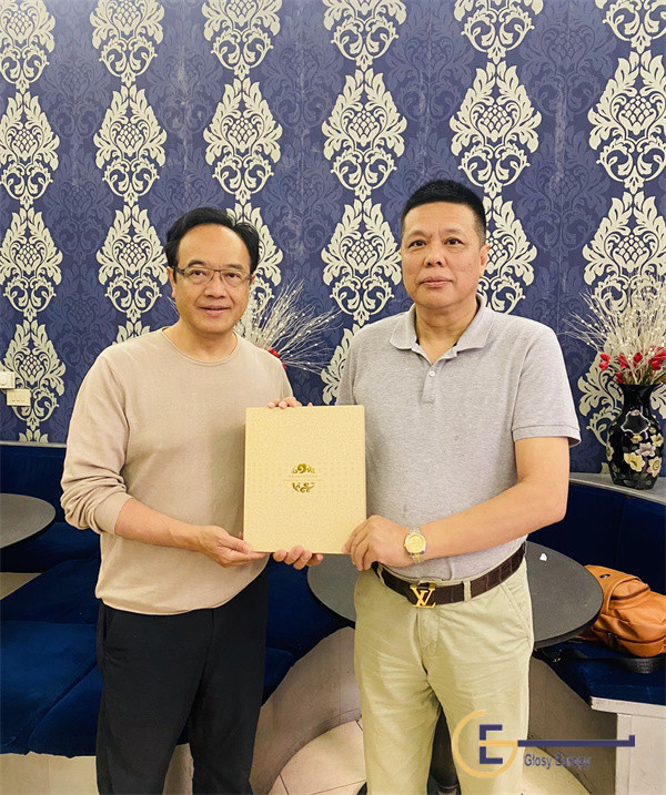 中国著名油画艺术家张焰先生(左一)与欧中之声文化传媒公司总裁杜国勇(右一)合影留念。