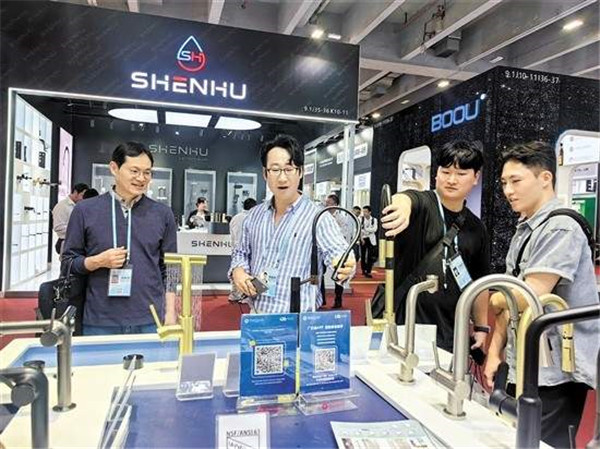 韩国客商被品质设计“在线”的卫浴产品所吸引。