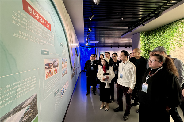 海外华媒代表了解万绿湖在生态保护建设,及生态旅游开发、水经济开发等方面的高质量发展情况。 (李紫妍摄)