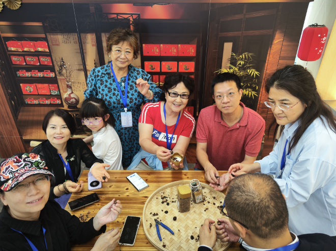 在姚生记观光工厂,采访团近距离感受了临安山核桃产业从传统农产品到文化创意产业的华丽蜕变。这座现代化工厂完美诠释了“产业+文化+科技”的融合发展模式,成为临安农文旅融合发展的典范。工厂内,智能化生产线与透明化观光通道相得益彰,游客可以清晰地观察到山核桃从筛选、脱壳到烘焙的全过程。在核桃体验区,媒体代表们兴致勃勃地拿起工具,体验亲手敲打核桃的乐趣,感受传统农产品的现代魅力。