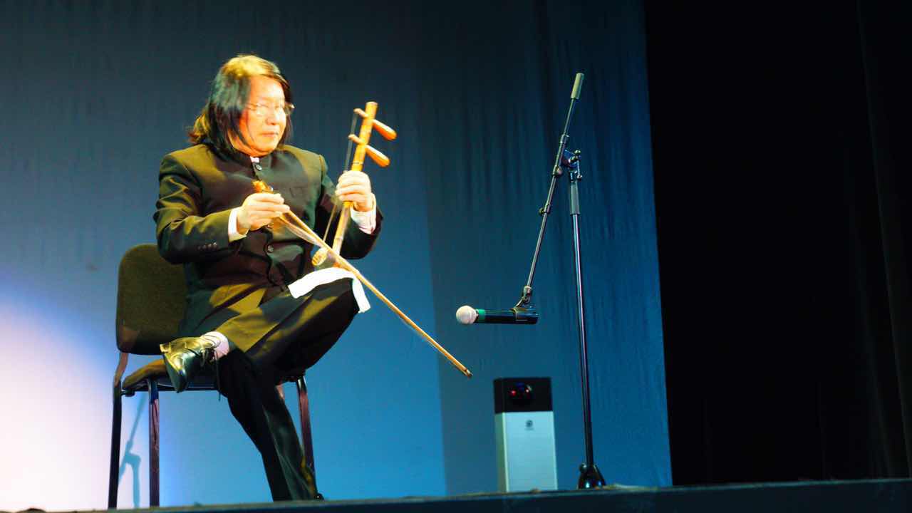 随后,中国艺术精粹京剧登场,国家一级指挥家刘毓麟大气地为大家带来京胡演奏《夜深沉》,这首源自于昆曲,用于京剧《霸王别姬》的京剧曲牌以其刚劲而优美的旋律似乎让观众看到了虞姬舞剑的场景。