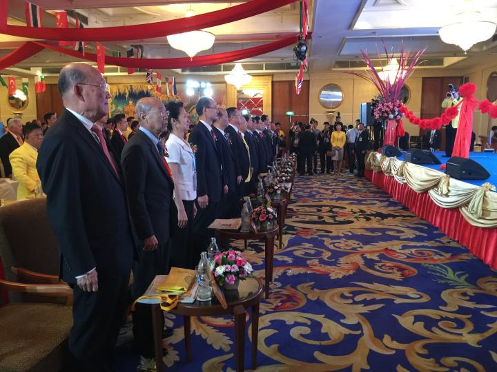 泰中文化产业集团(记者/杨千慧 摄影/宋胤泽) 7月7日上午,“2016全球华侨华人促进中国和平统一大会”在泰国曼谷隆重开幕。此次大会围绕“九二共识是两岸关系和平发展的基石”主题,旨在更好地凝聚全球华侨华人“反独促统”力量,促进新形势下和平统一工作的经验交流与合作,维护两岸关系和平发展和台海和平。来自中国全国政协、国务院台办、国务院侨办等国内部门和世界各地统促会的负责人、泰国多位政要、华侨华人代表及国际友人等近千人出席了当天的活动。