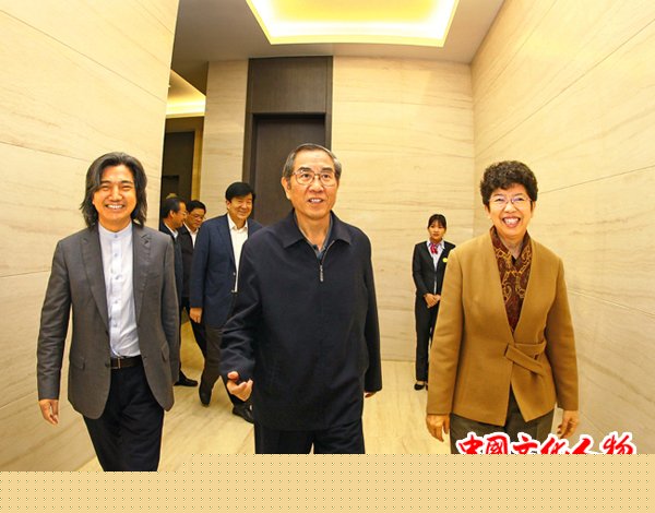 全国政协副主席马飚在中国文联党组书记、副主席赵实,中国文联党组副书记、副主席李屹,中国美术家协会副主席、中国美术馆馆长吴为山等领导的陪同下步入展览大厅 中新社发 王保胜 摄