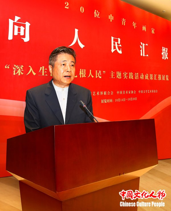 2016年10月14日,为纪念习近平总书记文艺工作座谈会发表两周年,由中国文学艺术界联合会、中国美术家协会和中国文学艺术基金会共同主办的“向人民汇报——20位中青年画家‘深入生活、扎根人民’主题实践活动成果汇报展”在中国政协文史馆隆重开幕。全国政协副主席马飚,中国文联党组书记、副主席赵实,中国文联党组副书记、副主席李屹,中国文联党组成员、副主席、书记处书记左中一,中国文联党组成员、书记处书记陈建文,中国文联副主席、中国美术家协会主席刘大为,中国美术家协会分党组书记兼秘书长徐里,中国美术家协会副主席、中国美术馆馆长吴为山,中国文学艺术基金会秘书长冯双白,中国文联美术艺术中心主任丁杰,中国文学艺术基金会副秘书长郭希敏,丁寺钟、王宓、王界山、王冠军、亚尔买买提、李传真、杨参军、肖景致、张延昭、张彦、张俊明、张洪春·阿太、陆庆龙、徐国雄、高阳、唐晓明、黄洪涛、彭华竞、董希源、鲍凤林等20位中青年画家,艺术家及社会各界群众数百人参加开幕式。开幕式由中国美术家协会副秘书长杜军主持。