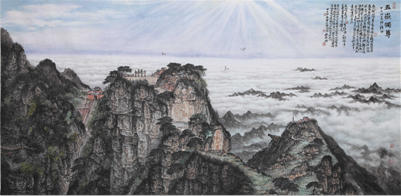 山水画题材的创作往往体现一位画家的整体水平。林浩湖先生的有些作品就只表现山谷和云,不涉及水瀑,又很贴切易经风水精神,这画画领域可以说不按常规。"山为筋骨,水为血脉,云烟为气韵;"可是他山水画中透露出的祥瑞之气,这在专家手里本来不易表现。一来容易被画理、画论所局限,一个是容易被经营位置所局限。理气派对风水有一段阐释;"山谷以藏风为贵,只要穴场藏聚,乘得生气.发达极快,何必拘泥有山无水..."而且山水画图式中"龙大脉小""太祖、少祖、明堂、朝案罗列清晰"不难做到,林浩湖先生还钻研五行之山在山水画中的创作.可以说这在画史上也是少见的。从而弥补了山水画类别的空白。是的,山水得气则生, "气韵生动"与风水学中的"藏风聚气"在他画作中几乎是体用兼备,理法自然了。虚实相生这是中国画内在的化生与画境高妙的体现。林浩湖先生对山水画的贡献不单是借虚衬实,他充分发挥了以刚柔见虚实,他提出了实处不离虚,如同黑中不离白,黑白的运行是相互作用的;古代名作无不在无画处求画意,通过万有的"无"来体现"有"的价值。易经中也常讲时空转换的智慧。他的山水画依托虚实来体现易经风水文化的价值。清代笪重光《画筌》云:"虚实相生,于无画处皆成妙境。"又讲:"今人用心在有笔墨处,古人用心在无笔墨处,倘能于笔墨不到处观古人用心,庶几拟议神明..."林浩湖先生作品《东方红》、《南梁革命根据地》、《延安颂》、《太行迎旭》等巨幅作品另人观后有种"真气内充,劲健含化"的感觉.山水画要得神首要是精于"计白当黑",从空无或虚白处生境,这对艺术家讲是"胸罗万象,感而会通".《易经》讲:"感而遂通天下之志,成其典要";在兵书讲:"形胜.";佛家讲:"一切唯心造";道家讲:"羽化而成仙";是古人对天地人三才的一种妙觉,其融会贯通后生命境界升华的呈现,犹如道家的"逍遥游"、佛家的"大自在"、儒家的"圆融通达"、画家的"造化于胸,随机而化" …