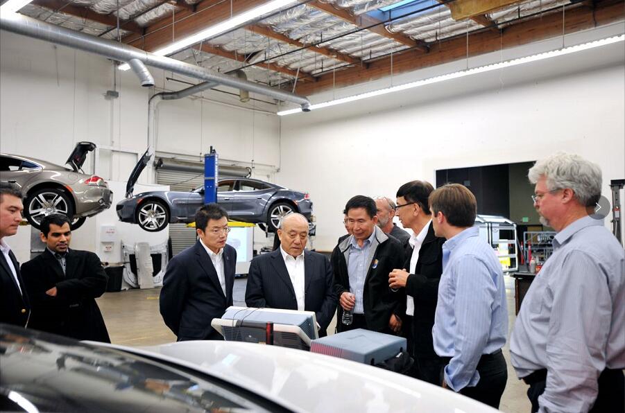 2014年,鲁冠球视察Karma公司,与技术管理人员交流。文/章建民最近,浙江一位著名的农民企业家、地处浙江杭州萧山区的万向集团董事会主席鲁冠球的病逝,引发了媒体和
